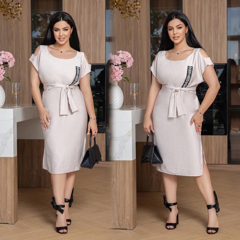 Размер: 46-48; 50-52; 54-56; 58-60 Тканина: льон жатка Длина платья: 110 см. Длина рукава: 18 см. Стильное платье прямого покроя, с поясом. Красивая натуральная ткань, приятная на ощупь, высокого качества, не скатывается.