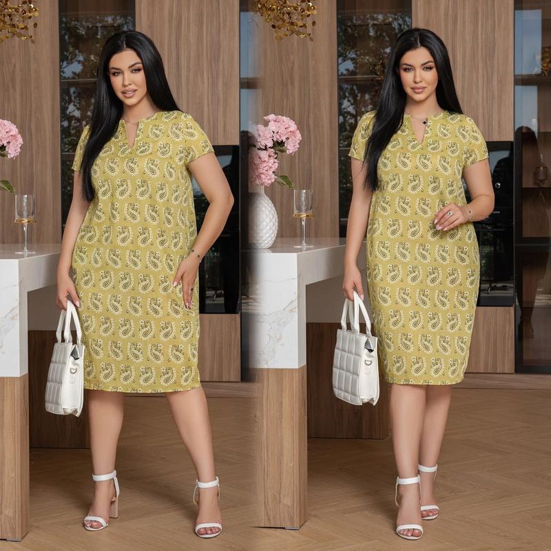 Розмір: 46-48; 50-52; 54-56; 58-60 Тканина: льон літній Довжина сукні: 105 см. Довжина рукава: 18 см. Стильна сукня прямого покрою, з бічними кишенями. Гарна натуральна тканина, приємна на дотик, високої якості, не кошлатиться.