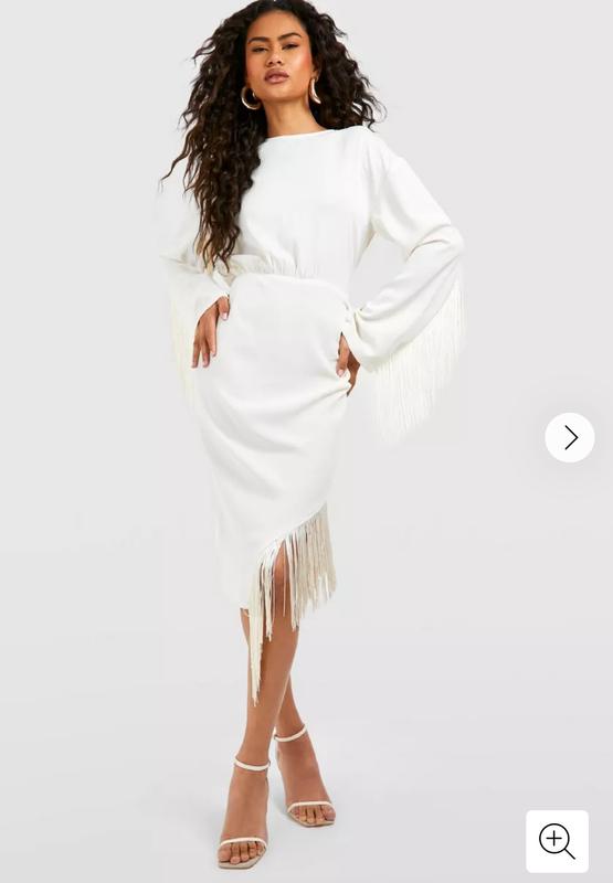 Шикарное вечернее платье цвета шампань с бахромой. На спинке молния. Немного тянется. Новое, остаток с магазина. ОГ 92-100 см ОТ 66-70 см ОБ 92-98 см Рукавчик от горловины 74 см Длина 83-110 см