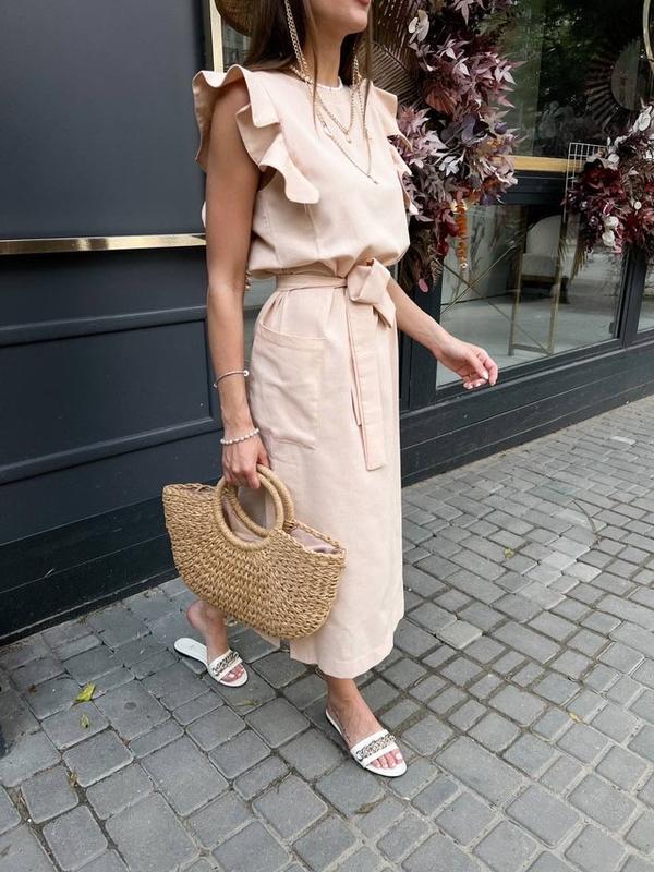 Платье Мод 706- 1028 Тканина - льон Цвет - голубой, малиновый, бежевый Размер: S-M, L-XL По бокам карманы Тканевый пояс Длина 124 см Цена - 680грн