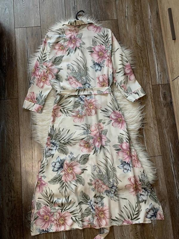 Довжина 113см Плечі 37см Пог 45,5см Пот 39см Поб 53см Низ 64см Рукав 46,5см Є пояс і застібка на пуговки по всій довжині.