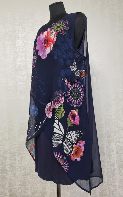 Ефектна и стильная двойная шифоновая платье на затин от мегапопулярного испанского молодежного бренда модной одежды Desigual, что в переводе с испанского языка означает "уникальный". Буйство красок, испанская фиеста, бесконечный праздник и выгодное море – все это нашло отражение в наряде одежды Desigual. Этот бренд для веселых, неординарных личностей, привыкших дарить позитив и жить на полную катушку. Верхний слой платья изготовлен из тонкой брендированной полупрозрачной шифоновой ткани, спереди на затин. Нижнее платье (она же подкладка) выполнено из тонкого вискозного трикотажа. Застежка-слезка на пуговицу расположена сзади на шее. На правом плече сзади вышито название бренда. Размер 42 грудь 46-51см талия 44-47 см бедра 49-54 см длина изделия 96-104 см (первая цифра - длина нижнего трикотажного платья, вторая цифра - длина верхнего шифонового платья. Будет еще много фирменных вещей. Подписывайтесь! Имейте в виду, что пока вы добавляете товар в ''обаране'', кто-то его уже покупает. И вы можете потерять свой шанс приобрести понравившуюся вещь. Дешевнее покупать сразу несколько вещей-таким образом вы экономите на доставке. При покупке пятки и больше вещей и оплаты на карту продавца сразу – доставка бесплатна. Удачных и приятных покупок! 15.06.24