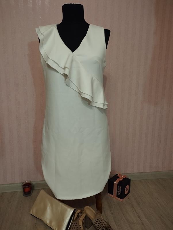 платье прямого кроя, молочного цвета, слегка напыление переливается на свету.
