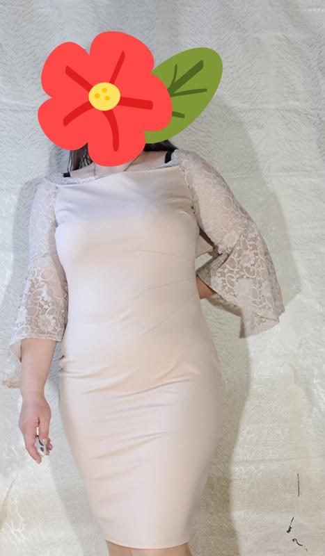 Платье с акцентами, нежного кремового цвета. асимметричный акцент на талии( доп.фото) Рукава и область выреза-кружевные. длина по спинке 100см. Нове. одето на параметры (но застегнуть сзади молнию я не смогла вовсе) рост 160 ОГ 104 см ОТ 80 см ОС 104 см