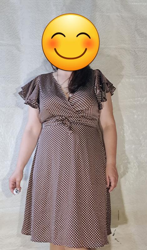 Платье насыщенного шоколадного цвета, в милейший белый горошек, Рукава рюшами. есть пояс для связки сзади -молния для застежки