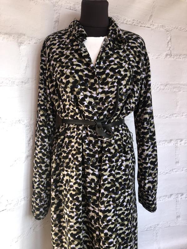 Сукня сорочка довжини міді, без карманів. Продається без паска (пояса). Стан чудовий.