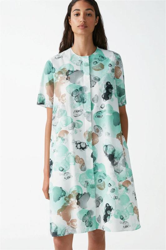 Идеальное платье для твоего неповторимого образа на каждый день Платье-рубашка COS - Принт: абстракция - Материал: легкая ткань жатка из поплина - Размеры: 32 (XS/S), 38 (S/M), 42 (M/L)