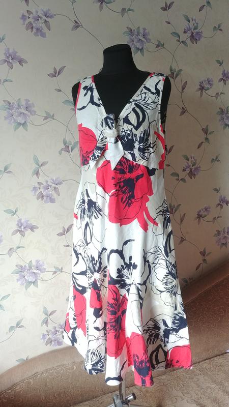 Стан новий. Marks&Spenser. p.16.. Без слідів користування. Крій приталений. без застібки. без підкладки, не світить. Льон суміш з віскозою, щільна тканина. Урій по косій, лягає гврно ❤ДОВЖИНА. 112 ❤ПОГ 54 ❤ПОТ 50 ❤ПОС 62 ❤пройма 25