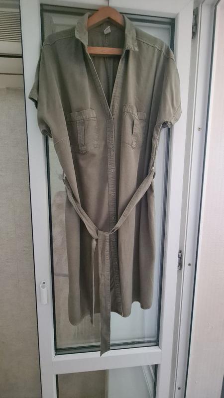 Платье-рубашка h&m. Спущенное плечо. На кнопках. По бокам небольшие разрезы. Под пояс. Размер и состав на фото. Стан - идеальный