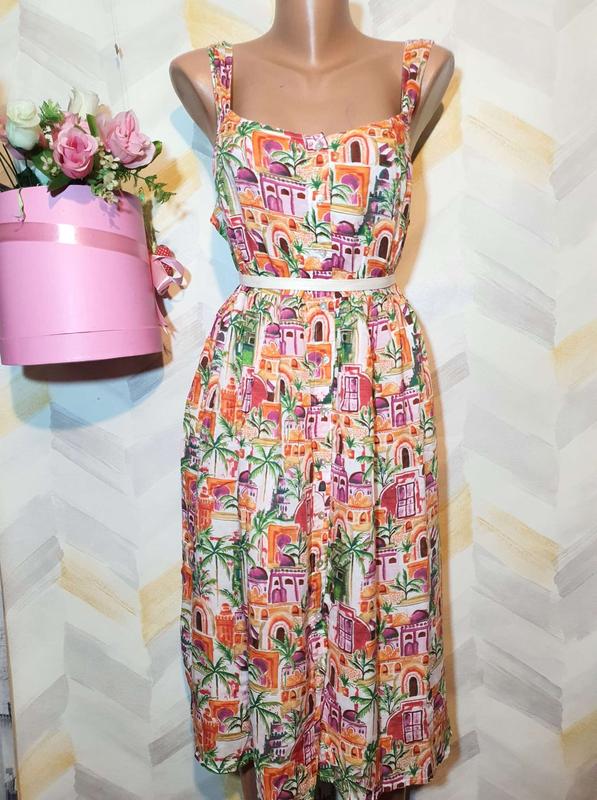 Платье на подкладке спереди пуговицы длина 106 см пог 56см-60 см тянется резинка пот 46 см-50 см юбка пышная