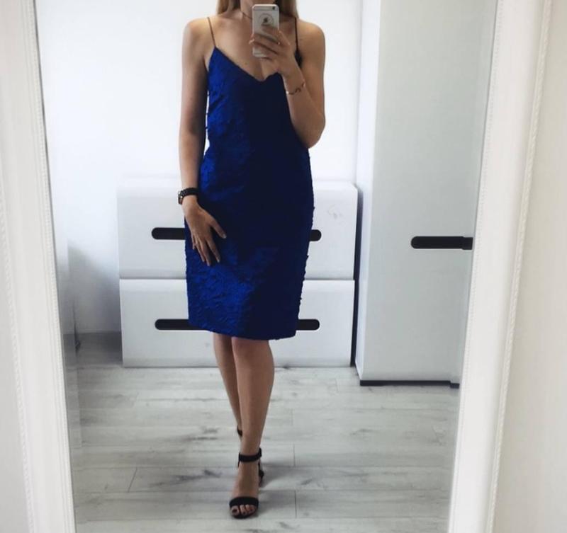 Продается платье, на рост 170 по колено, синий цвет, снизу выбитых цветов черный.