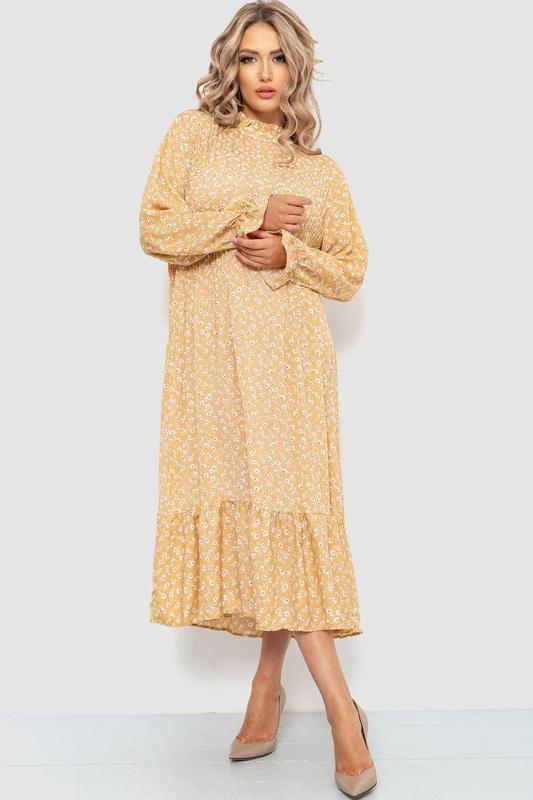 Сукня вільного крою з квітковим принтом, колір бежевий, 204r201
