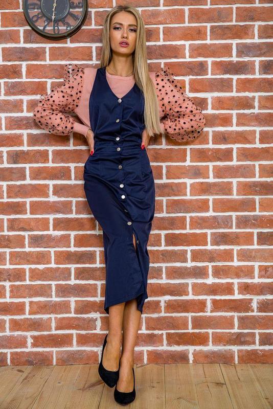 Сарафан довжини міді на ґудзиках, темно-синього кольору, 167r070-1