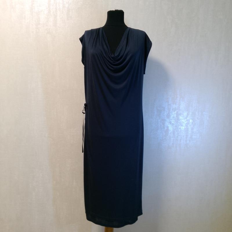 Платье в идеальном состоянии от недорогого бренда, идет на запах и красиво сядет на любую фигуру, темно синего цвета. Ткань невероятно приятная, гладкая и красиво ниспадает, очень красиво тянется, свободный крой. По набору размер S, но свободно садится на М. Состав 100% лиоцелл. Замеры: длина 110 см, по груди 100 см, талия 92 см, бедра 104 см ( за счет того, что ткань красиво тянется смело можно добавлять до 5 см).