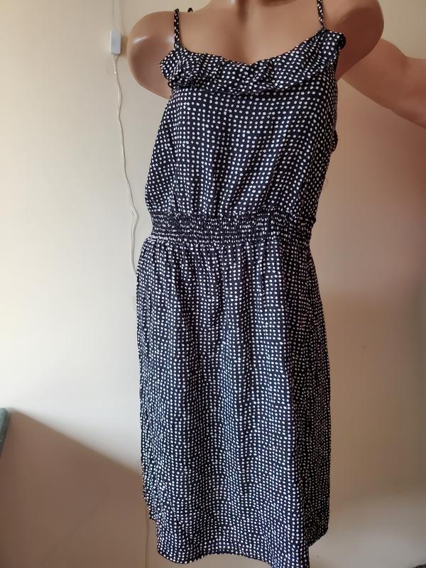 Сарафан в горошек, пог 52см,пот 40см растягивается до 53см, поб 59 см, длина 82см плюс лямки.