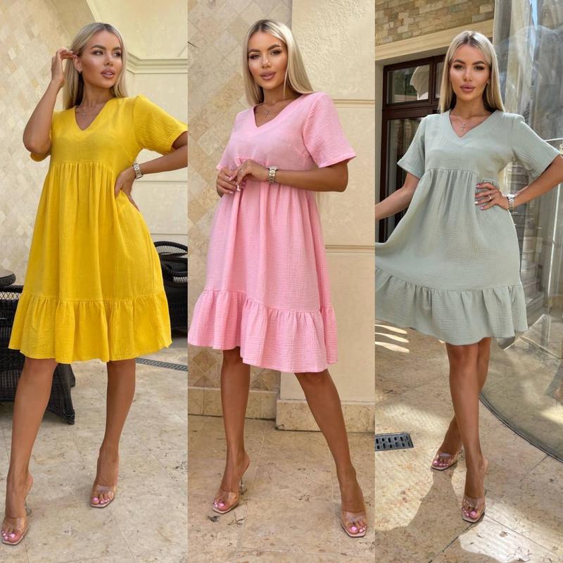 Сукня Модель 3002 Ткань муслин Размеры: 42-46, 48-52 Цвета: горчица, оливка, пудра
