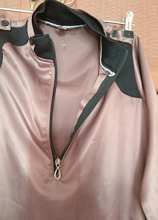 Атлас плотный, непросветляется. Прямого кроя ширина по спине 40см, бедра 46см. Длина 90 см. Цвет как на первом фото