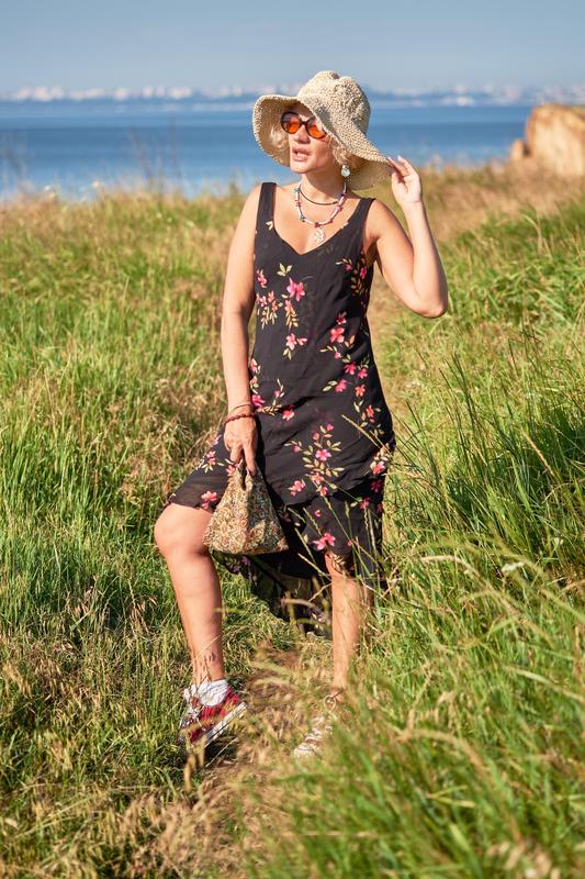 Платье шифоновое в цветочный принт, на подкладке, размер s