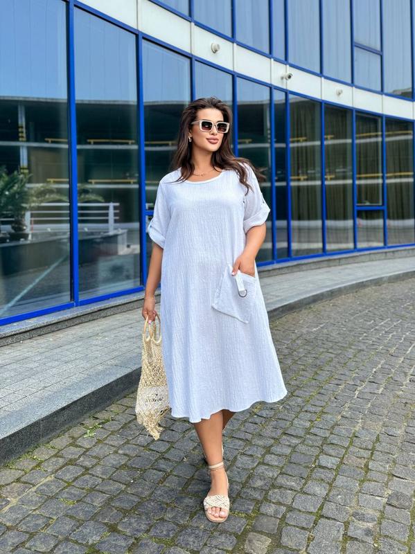 ‼️‼️‼️НОВИНКА ‼️‼️‼️ 💙💛Зроблено в Україні💙💛 Сукня це чудовий вибір на літню спеку)Стильна , зручна , з легкої приємної до тіла тканини.В ній ви почуватимете себе жіночно та неймовірно комфортно) ✅Сукня ✅Мод.1931 ✅Розміри: 48-52,54-58 Тканина:льон - жатка. Кольори: білий,сірий, електрик, блакитний,малина, мокко. Довжина сукні - 107см. Довжина рукава- 29см. Заміри: ✓48 -52р. Об'єм грудей - 124 см. Об’єм талії - 134см. Об'єм стегон - 144см. ✓54-58р. Об'єм грудей - 132 см. Об’єм талії -142 см. Об'єм стегон - 152см.