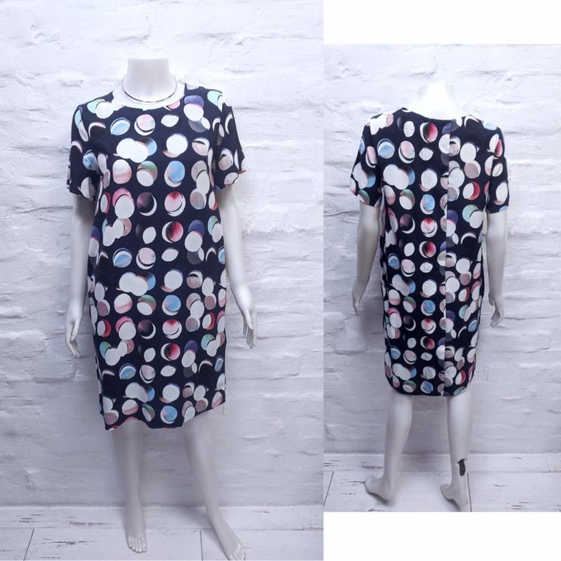 Состояние более чем идеальнейшее. цвет тёмный синий с абстрактным фантазийным рисунком. По бокам есть карманы. на спинке застёжка из кнопок. Платье без подкладки. Есть как минимум три причины купить данную вещь здесь сейчас и б/у: 💚 экологичность относительно потребления 💚этичность относительно производства ( например шёлка, поинтересуйтесь способом производства новых изделий) 💚разумность. Условия сотрудничества: 👉Резерв возможен🌸, но на 1 день. 👉В случае покупки с наложенным платежом, посылка после 3(трёх) банковских дней ожидания и хранения в отделении почты получателя, возвращается обратно ко мне👈 👉Цена окончательная, либо почти окончательная👈 👉Фото на теле нет и не будет, но есть фото на манекене👈 👉Обмен и возврат возможно обсудить до покупки, пожалуйста, внимательно сверяйте размеры и замеры которые предоставляются👈 👉Покупка отправляется после 100% оплаты на карту Приват-банка либо Моно-Банка, в течение 3-х дней Новой Почтой, Укрпочтой и Мист-экспрес по договорённости (за счёт покупателя)👈 👉Спасибо что цените Ваше и мое время:)👈