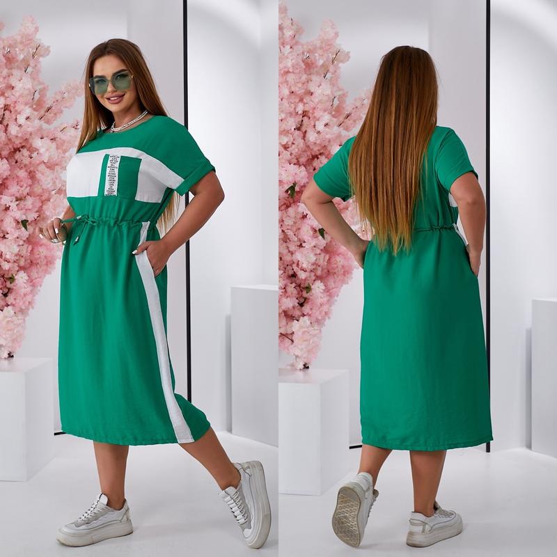 Розміри: 1(48-50),2(52-54),4(56-58) Тканина: льон жатий Заміри: Сукня прямого сілуєту (48-50)-ОГ 112 см, ОС-120 см (52-54)-ОГ 120см, ОС-128см (56-58)-ОГ 128 см, ОС-136 см Довжина рукава від горловини 28см Довжина по спинці 113 см Сукня вільного крою , прикрашає вшитим паском та тендітно підкреслює талію св