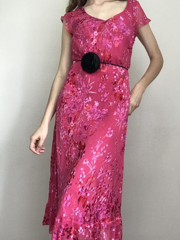 Шелк +вискоза. натуральное яркое розовое платье на лето длины миди