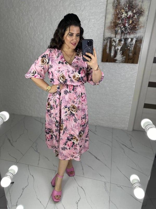 Розміри : 50-52,54-56,58-60,62-64 Принти : рожевий , леопард Тканина : софт Подовжене плаття з v-образним вирізом , рукав на резинці нижче ліктя , на талії резинка + поясок ПАРАМЕТРИ МОДЕЛЕЙ ( на них одягнений розмір 50-52): Інна 108-82-108, зріст 165см Інга 110-80-116, зріст 172см Ірина 110-82-118, зріст 170см Олена 107-83-114, зріст 167см Заміри виробу : Розмір 50-52 Обʼєм грудей 116 Обʼєм талії 80-114 Обʼєм стегон 156 Довжина рукава 39 Біцепс 42 Плечі 46 Довжина по спинці 120 Довжина поясу 146 Розмір 54-56 Обʼєм грудей 124 Обʼєм талії 84-120 Обʼєм стегон 160 Довжина рукава 41 Біцепс 44 Плечі 46 Довжина по спинці 123 Пояс 146 Розмір 58-60 Обʼєм грудей 134 Обʼєм талії 90-132 Обʼєм стегон 170 Довжина рукава 44 Біцепс 48 Плечі 48 Довжина по спинці 126 Пояс 146 Розмір 62-64 Обʼєм грудей 144 Обʼєм талії 100-144 Обʼєм стегон 180 Довжина рукава 44 Біцепс 50 Плечі 50 Довжина по спинці 130 Пояс 146 вл