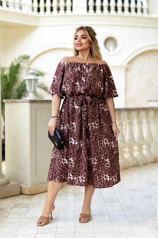 Сукня Модель : 184 Размеры : 50-52, 54-56, 58-60 Тканина : супер софт Кольори :чорний, цветочный,леопард Платье декорировано пуговицами, на спинке и спереди резинка,хорошо держит. Пасок съёмный Замеры : 50-52 / 54 - 56 / 58-60 ОГ 107 / 120 / 130 см ОТ 122 / 138 / 148см Длина 111 / 112 / 113 см Длина рукава 29 / 30 / 31см