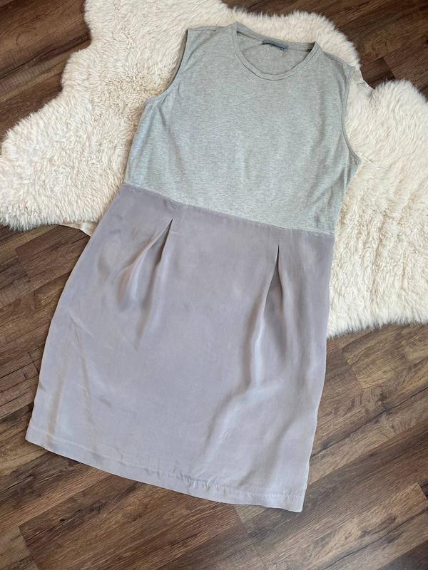 Меди-платье COS. Верх из трикотажа 100% коттон, низ - 100% купро. Сбоку потайная молния. На этикетке размер М. длина до пояса - 38 см длина от пояса - 53,5 см ширина подмышками - 48 см пояс - 43,5 см ширина понизу - 58,5 см