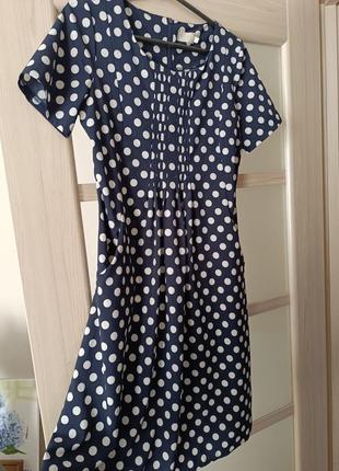 идеальное состояние бавовна цвет: темно-синий в белый горох длина 95 ног 42 талия 41 плечи 37 есть карманы молния по спине