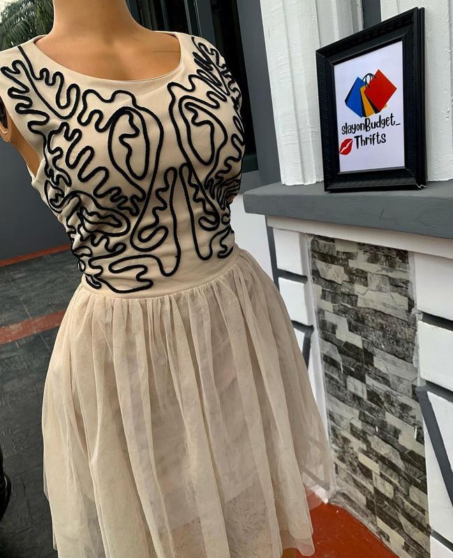 Сукня з юбкою фатиновою. Сукня має підюпник і не буде просвічувати, зверху два шари фатину, верх оздоблений гарним візерунком у вигляді абстракції. Позаду застібка блискавка. Фірма MAYA Deluxe