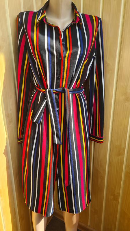 Яркое красивое платье-рубашка легкое, по бокам небольшие разрезы. Указан размер 10, кажется, подойдет на размер М-Л. Замерчики сделает по необходимости