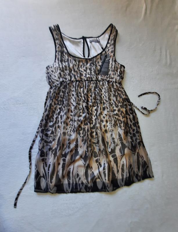 Сукня леопардова. Производитель SOAKED. Новая с етикеткой. Размер М. Прозрачный шифон с леопардовым принтом на подкладке. Спереди под грудью присборены, сзади на завязке. Имеет нюанс. При переезде где-то появилась затяжка на подкладке. (фото6). В надетом виде вообще не видно. Сделаю скидку. Объем груди 95 см Объем под грудью 87 Длина 87 см