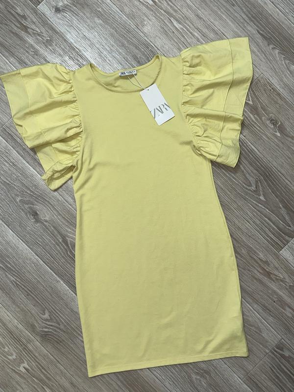Лимонное платье с объемными рукавами Новое 🏷️Zara Размер XL Длина 88. ПОГ 44