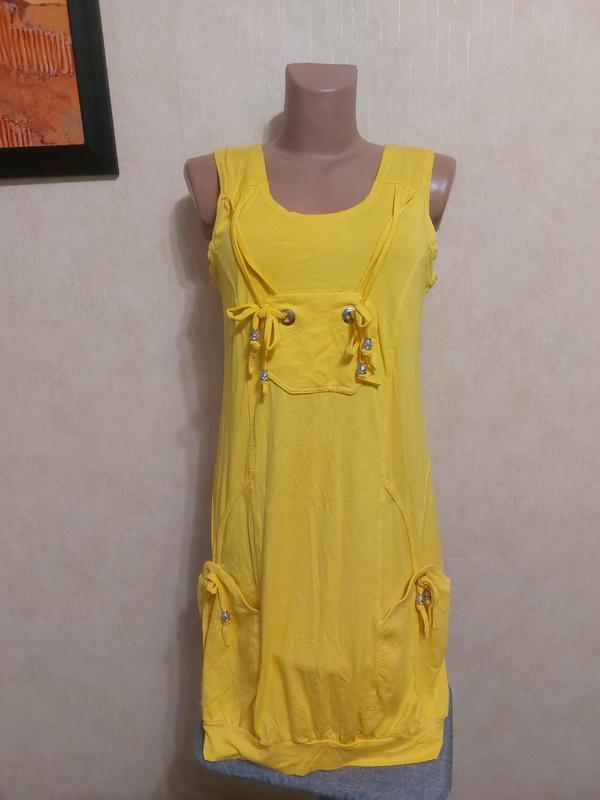 яркое желтое летнее платье с карманами 48 р нова Д 92 пог 46-72 пот 45-68 поб 51-79