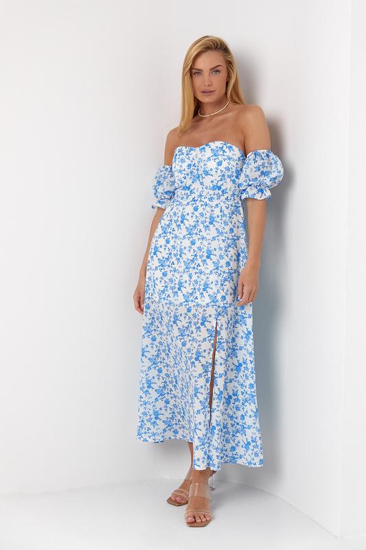 Цветочное платье-бюстье с пышной юбкой цвет голубой размер l fl_001552
