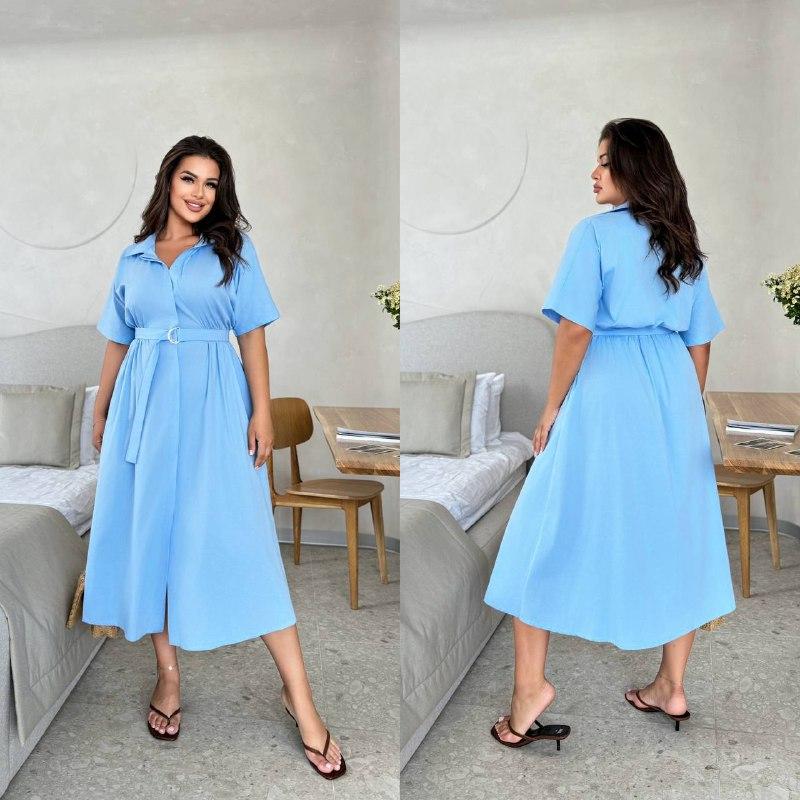 Тканина котон стрейч Колір чорний, моко, м'ятний, блакитний Розмір 48-50,52-54,56-58 Плаття з легкого котону, на ґудзиках, сорочковий комір. Короткий суцільнокроєний рукав, талія на гумці, з кишенями har