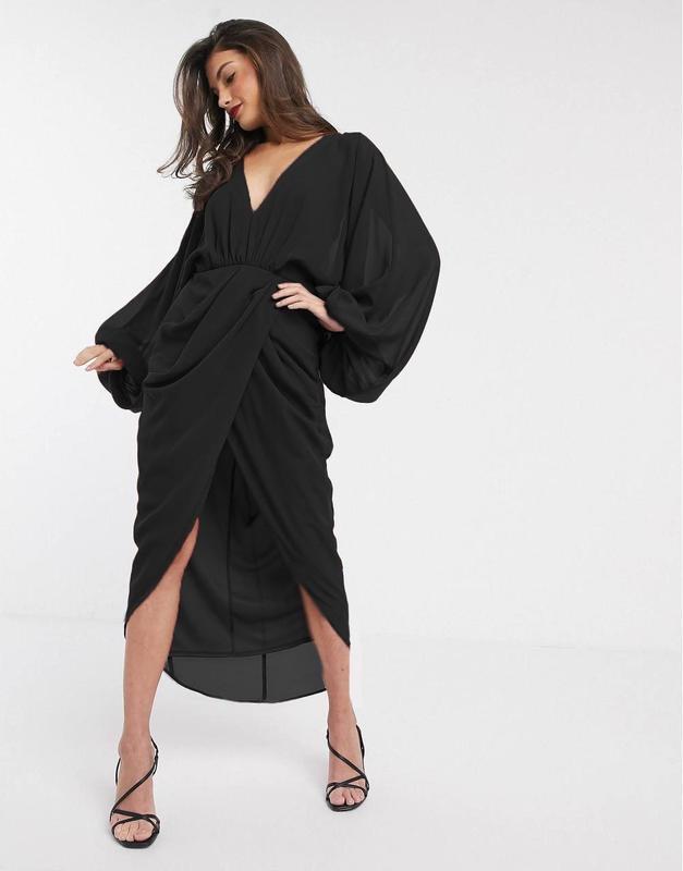 платье миди с пышными рукавами ASOS Uk 16