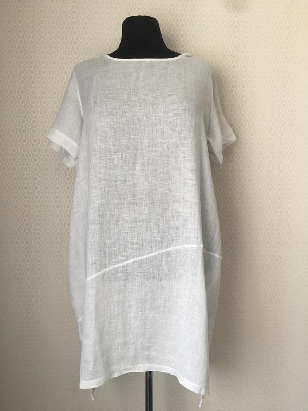 100% лён! Must have для жаркого лета! Белое лёгкое платье, размер L-XL-XXL. Идеальное состояние. Круглая горловина. Без карманов. Интересный диагонально-дугообразный шов спереди ниже талии ) Показала посадку на манекенах двух размеров L и 3XL (параметры манекенов в объявлении ниже), считаю что в обоих случаях выглядит достойно ! ) Замеры изделия в не растянутом виде, см: плечи 46, подмышки (примерно равно ПОГ) 61, ПОТ 62,5, ПОБ (Замер делаю на расстоянии 65 см от плечевого шва, если вещь короче, то по краю изделия) 67, длина 99 спереди, 106,5 сзади длина рукава 23. Объёмы черного манекена, см: плечи 43, ОГ 111, ОТ 90, ОБ 114 Объёмы желтого манекена, см : плечи 40, ОГ 97, ОТ 77, ОБ 100 Отправляю Новой почтой либо наложенным платежом (при условии оплаты доставки в оба конца), либо по предоплате на карту Приват, Укрпочтой по предоплате, Meest по предоплате Продаю много фирменных вещей Airfield, Strenesse, Gerry Weber, Steilmann, Brax, Bonita, Basler, Frank Walder, Apanage, Olsen, Ulla Popken, Gardeur, Monari, Rabe, Guess, Hauber, Marks&Spencer, Concept K. Много новых вещей (с этикеткой) - можно на подарок. Смотрите другие мои объявления. Спасибо, что заглянули :-)