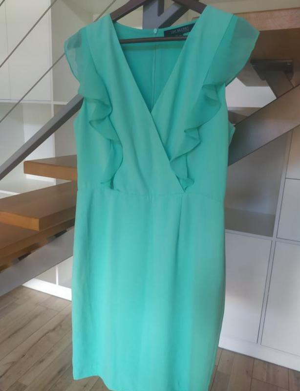В идеальном состоянии красивое платье,бирюзовый цвет, нежно смотрится по фигуре.Длина 103,н/о талии 41,н/о груди 53,н/о бедер 54.