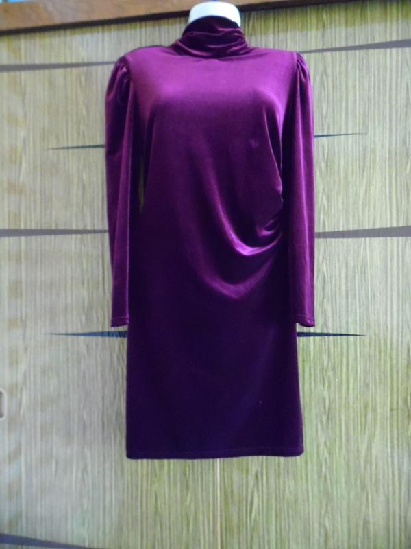 Сукня велюр GEORGE размер 16 - идет на 50-52. Велюр - полиэстер 92%, эластан 8%, мягкая, эластичная, не мнется. Цвет бордовый. Силуэт облегающий, длина миди. Воротник «стойка» со сборкой по бокам, возле плечевого шва. По спинке воротник застегивается на 3 пуговицы в тон На уровне талии с одной стороны мягкая сборка, визуально скроет лишние кг. Рукав длинный, по плечевому шву присборен. ЗАМЕРЫ: Плечи - 41 см+ Длина рукава от проймы - 66 см Грудь - 56(112) см+ Талия - 46(92) см + тянется Стегну — 56 (112 см + тягнуться Длина изделия - 100 см