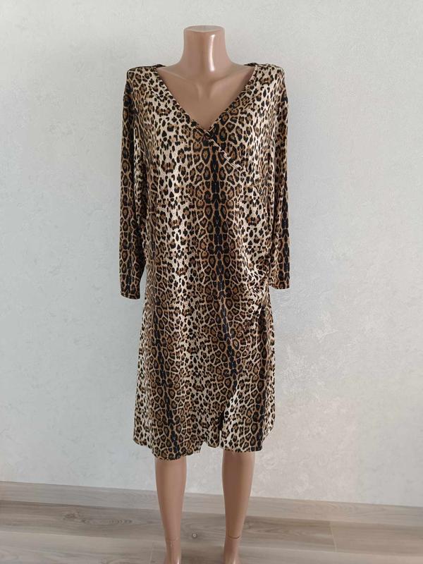 Платье с леопардовой расцветкой, в идеальном состоянии. На размер 48-50. Длина- 102 см, ПОГ- 55-56 см, Рукав- 50 см. ПОБ- 60-62 см.
