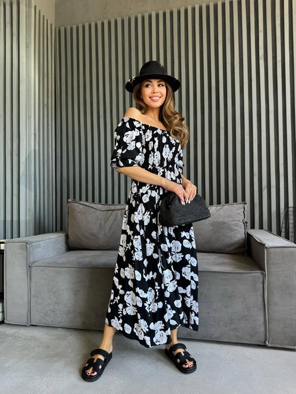 Платье миди с резинкой Мод 209 📍Тканина - штапель 📍Размеры :42-44,46-48,50-52 Качественное, стильное, практичное платье в нежных летних цветах. Платье доступно в трех цветах.Супер качество,по супер цене
