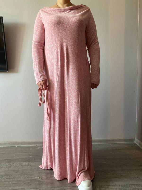 Изделие из трикотажа Красиво ложится по фигуре,подойдет на дорогой тип фигуры В наличии размерS- XXL На фото XXL Полуобхват груди-59 Полуобхват бедер-60 Длина -135 Длина рукава-66