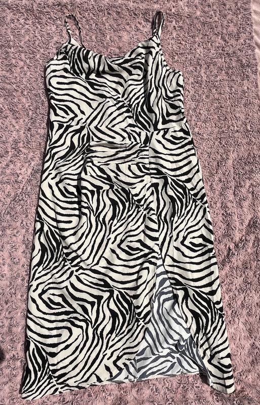Очень красивое платье актуальной расцветки. Длина миди, на одной ножке разрез. На животике собрана ткань. Сзади на молнии. Стан нового.