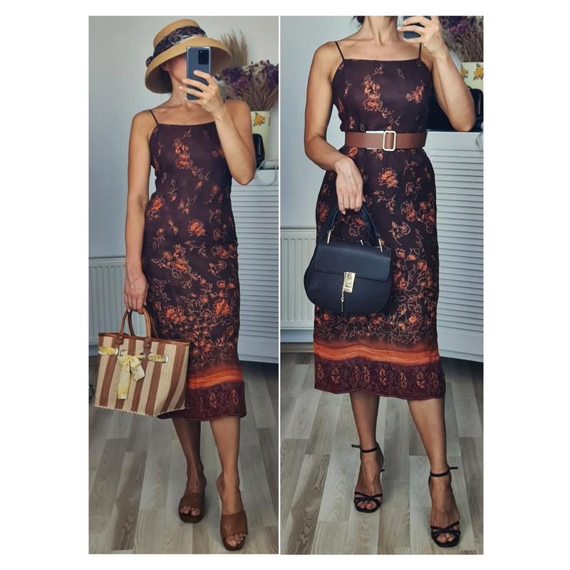 ❗️Пожалуйста, читайте ВНИМАНИЕ текст до самого конца! На большинство вопросов есть ответ ниже или же в пунктах сайта. ❗️ ⚠️НЕ СТОК І НЕ СЕКОНД ⚠️Перед тем, как оформлять через кнопку "КУПИТЬ", то есть через сайт, задавайте сначала вопрос, а не после оформления покупки! Уточняйте есть ли в наличии товар, потому что продаю также на других площадях, могу физически не успеть удалить. ⚠️Отправка по любой почте каждый день. 📍📝🖊Подписывайтесь, обновление товара каждый день, разная ценовая категория! 🛍Выбирайте подарок за покупку в облаках до 300грн или с пометкой ПОДАРОК(уми есть в описаниях, НЕ ВСЕ вещи до 300 гривен в подарок)💍💄👠👝🧥👖🩱🥻👗 Верх 100% вискоза, подкладка 100% полиэстер. Без дефектов и нюансов, два раза оденет. Очень красивый крой и сочетание колепов, прямого кроя. По спине потайная молния, сзади разрез. Состоит из следующих цветов: коричневого (молочный), оранжевый и бордовый (марсала). Бретели из атласных жгутов, не регулируются. Размер S, будет также на XS и M: ПОГ 43-47 ПОТ 38-40 ПОБ 50 ПІВОБХВАТ ПО САМОМУ НИЗУ 58 ДЛЖИНА С БРЕТЕЛЬКАМИ 120 ПРОЙМА РУКИ 21 ВЫСОТА РАЗРЕЗА ЗАДУ 32
