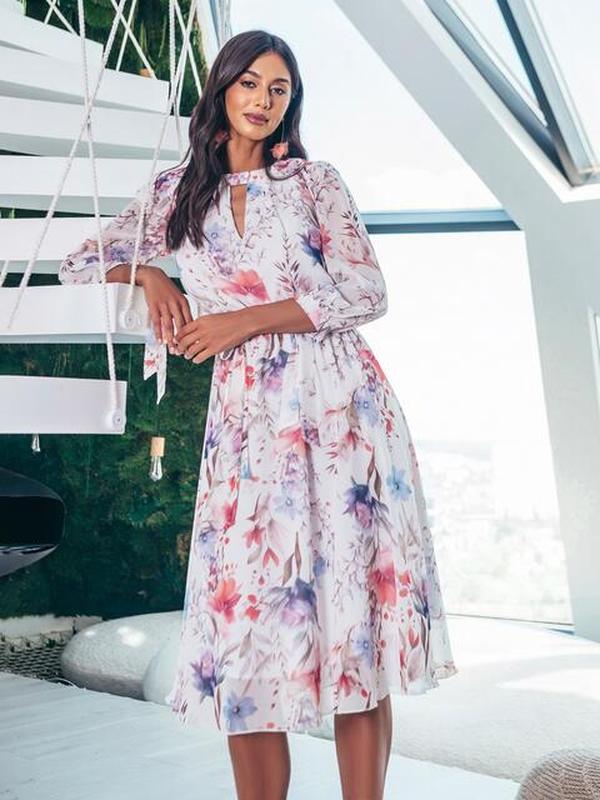 Платье из креп-шифона с фигурным вырезом горловины и резинкой в поясе