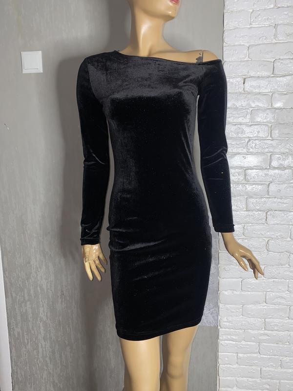Оригинальное бархатное платье по фигуре велюровое платье с приспущенным рукавом Amisu, S. Длина 90см, ПОГ 41-51см, ПОБ 42-53см