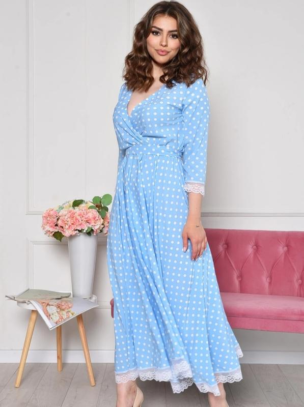 Стильное миди платье в горошек, размер 44-46, материал полиэстер, длина 126см.