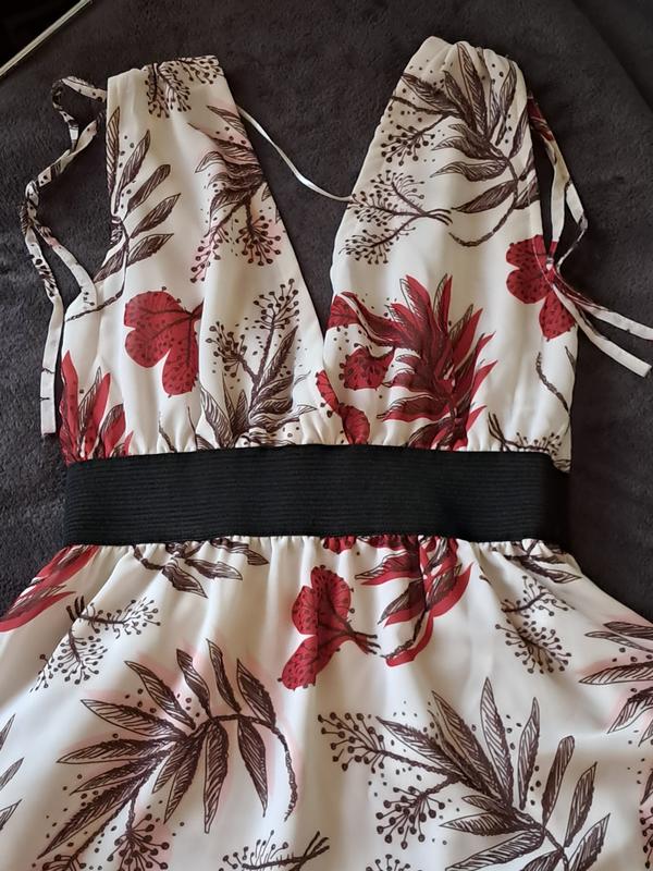 красивое летнее платье с глубоким декольте и красивой спинкой, на талии широкая резинка. Ткань легкая и приятная к телу.
